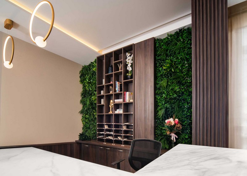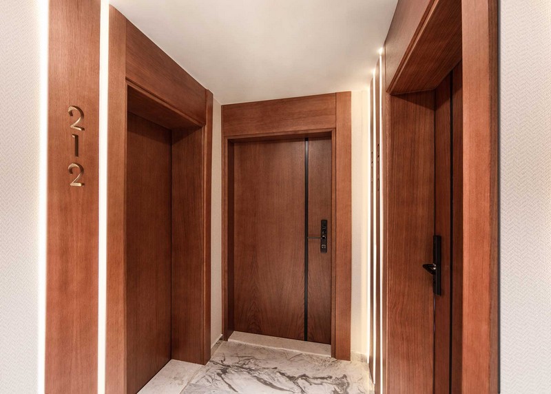 Elegantno opremljen prostor u kom dominira prirodno drvo, neutralni tonovi su upareni sa modernim linijama. Dizajniran da pruži osjećaj udobnosti, stila i funkcionalnosti.