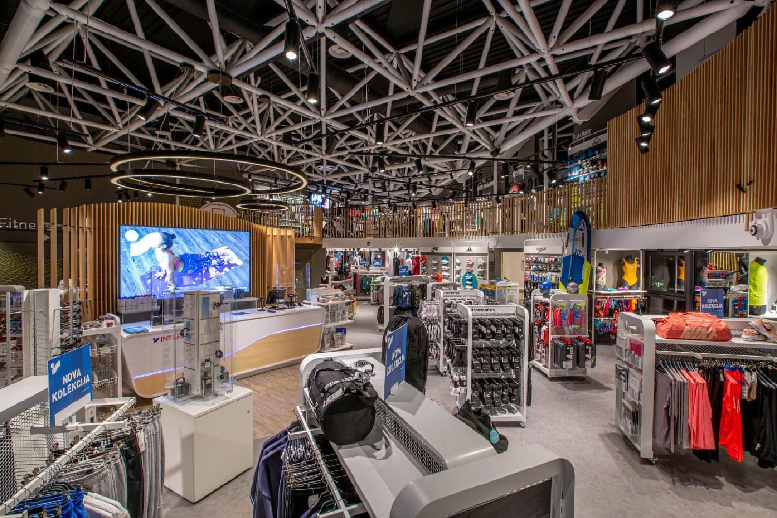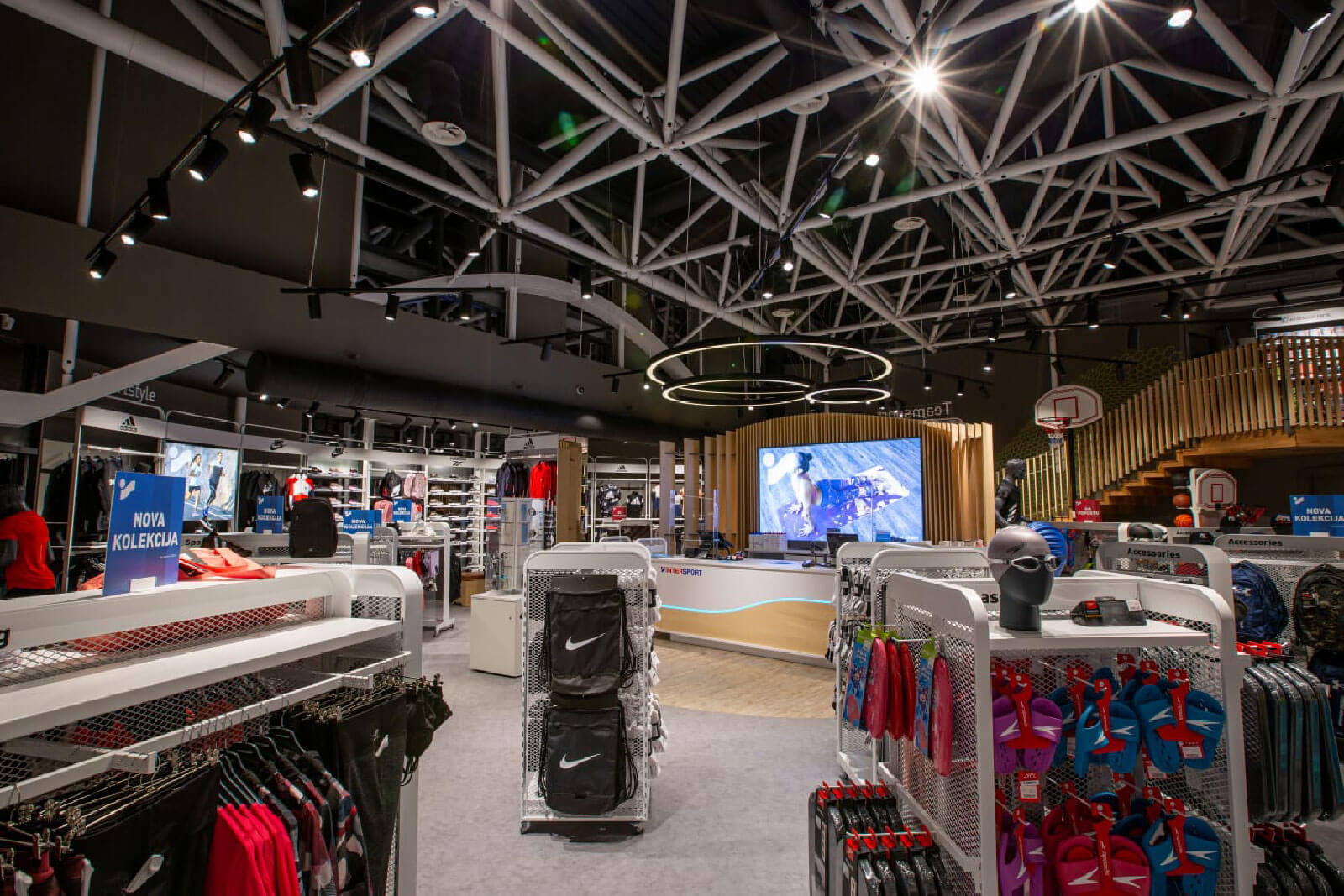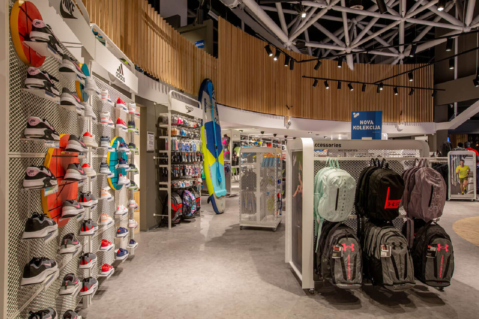 Opremanje prodajnog prostora sa naglaskom na dekorativne drvene elemente i savremeni dizajn. Dominantni su detalji u boji hrasta, koji prostoru daju toplinu i vizuelnu prepoznatljivost.