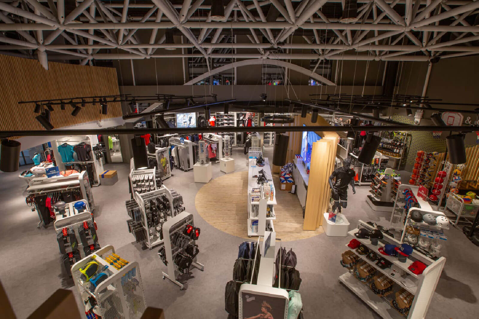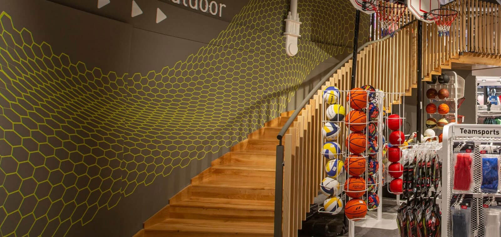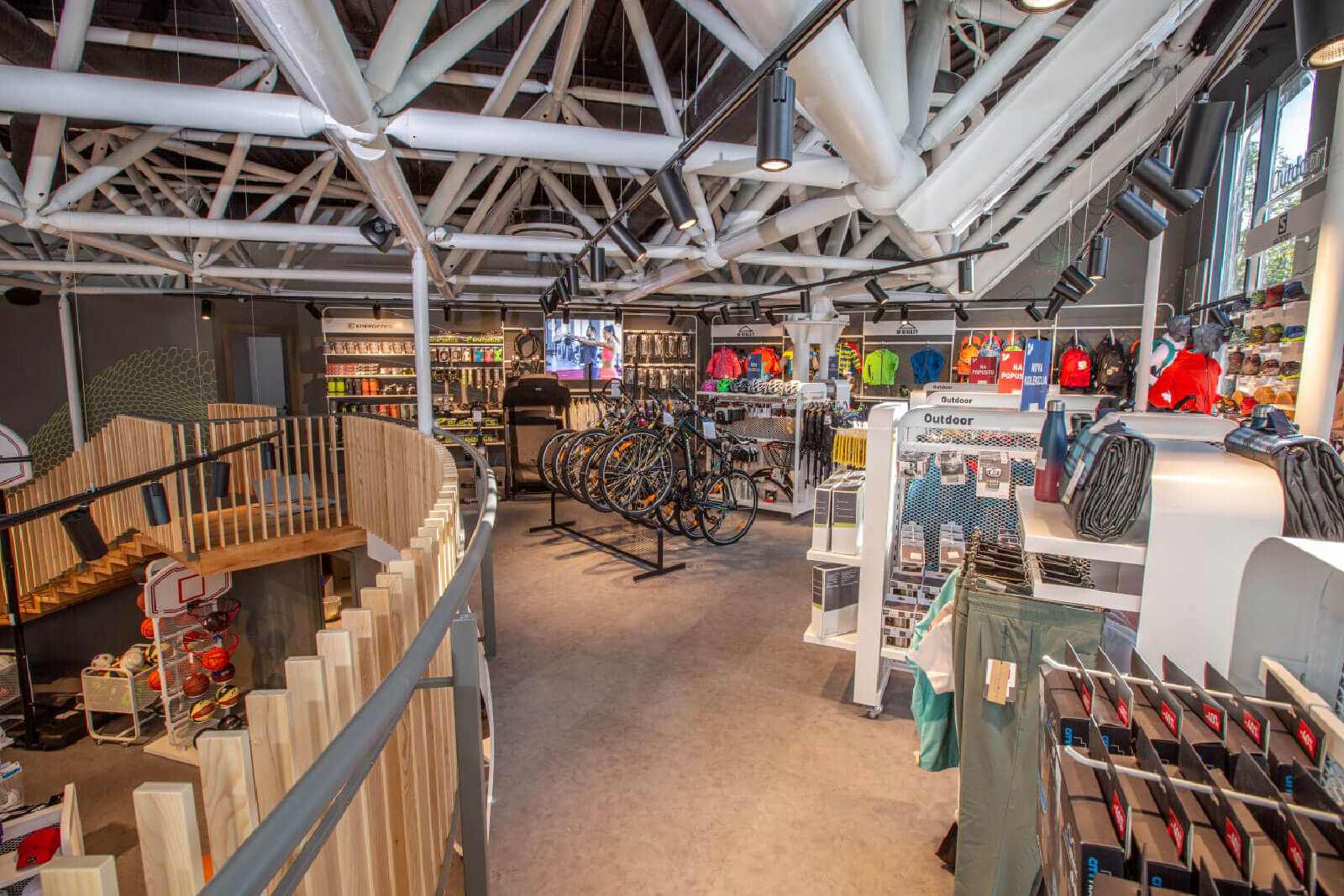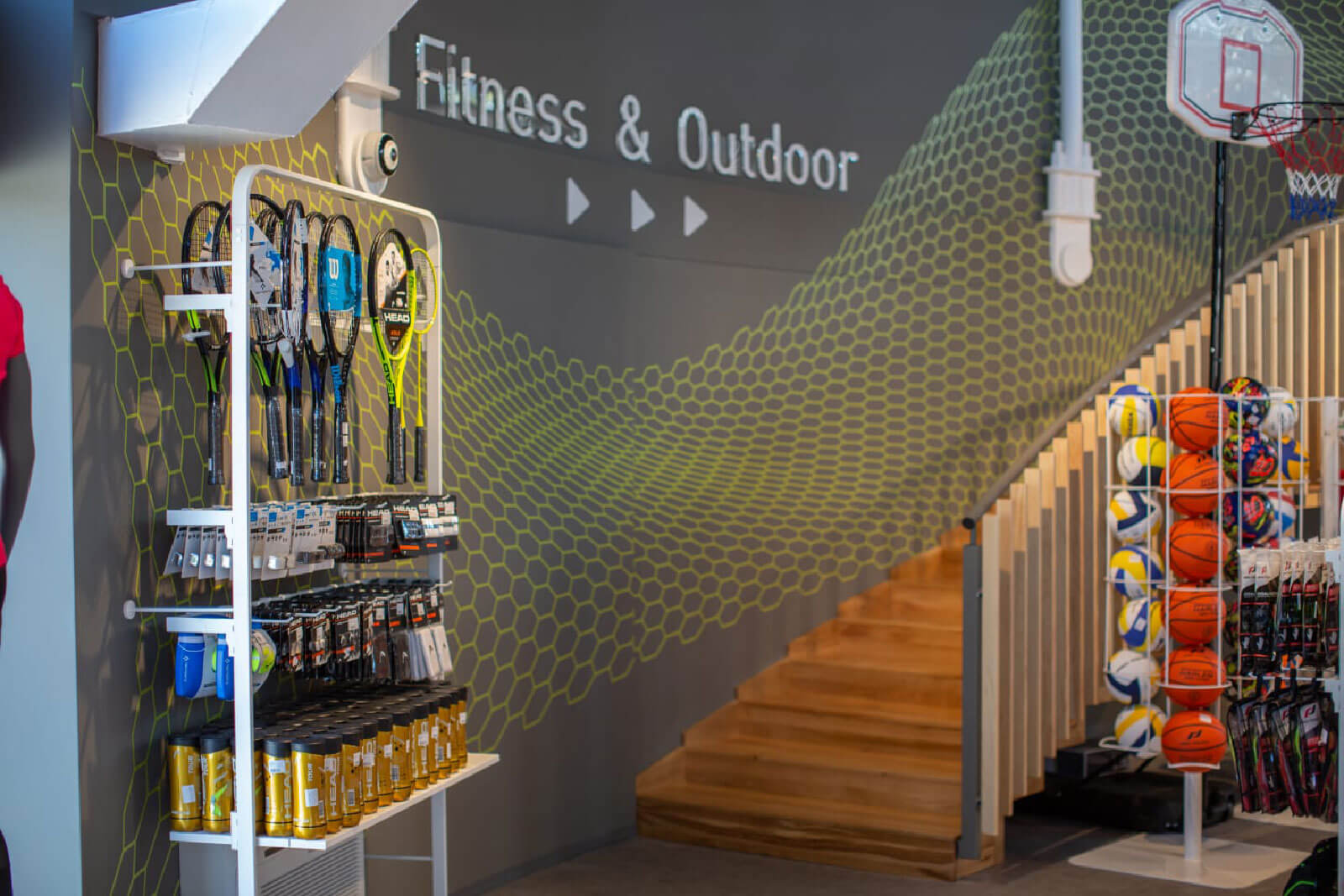 Opremanje prodajnog prostora sa naglaskom na dekorativne drvene elemente i savremeni dizajn. Dominantni su detalji u boji hrasta, koji prostoru daju toplinu i vizuelnu prepoznatljivost.