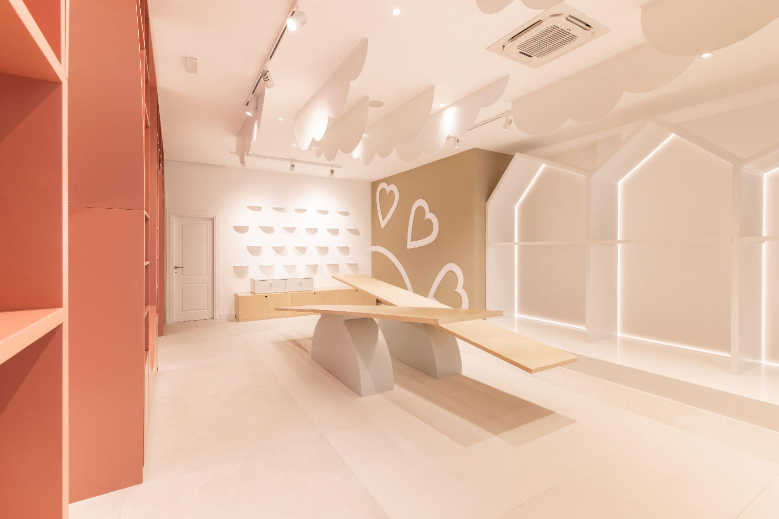 Opremanje dječije prodavnice sa posebnim fokusom na kreativnost, funkcionalnost i jedinstven vizuelni identitet, stvarajući nezaboravno iskustvo prostora. Svaki element enterijera pažljivo je osmišljen i izveden kao unikat, sa razigranim oblicima koji podstiču dječiju maštu i stvaraju osjećaj igre.